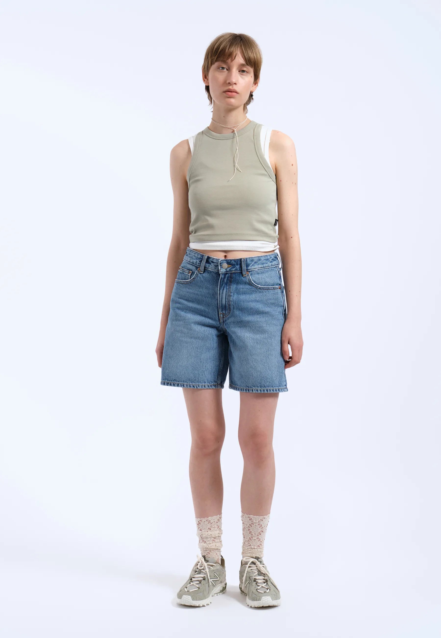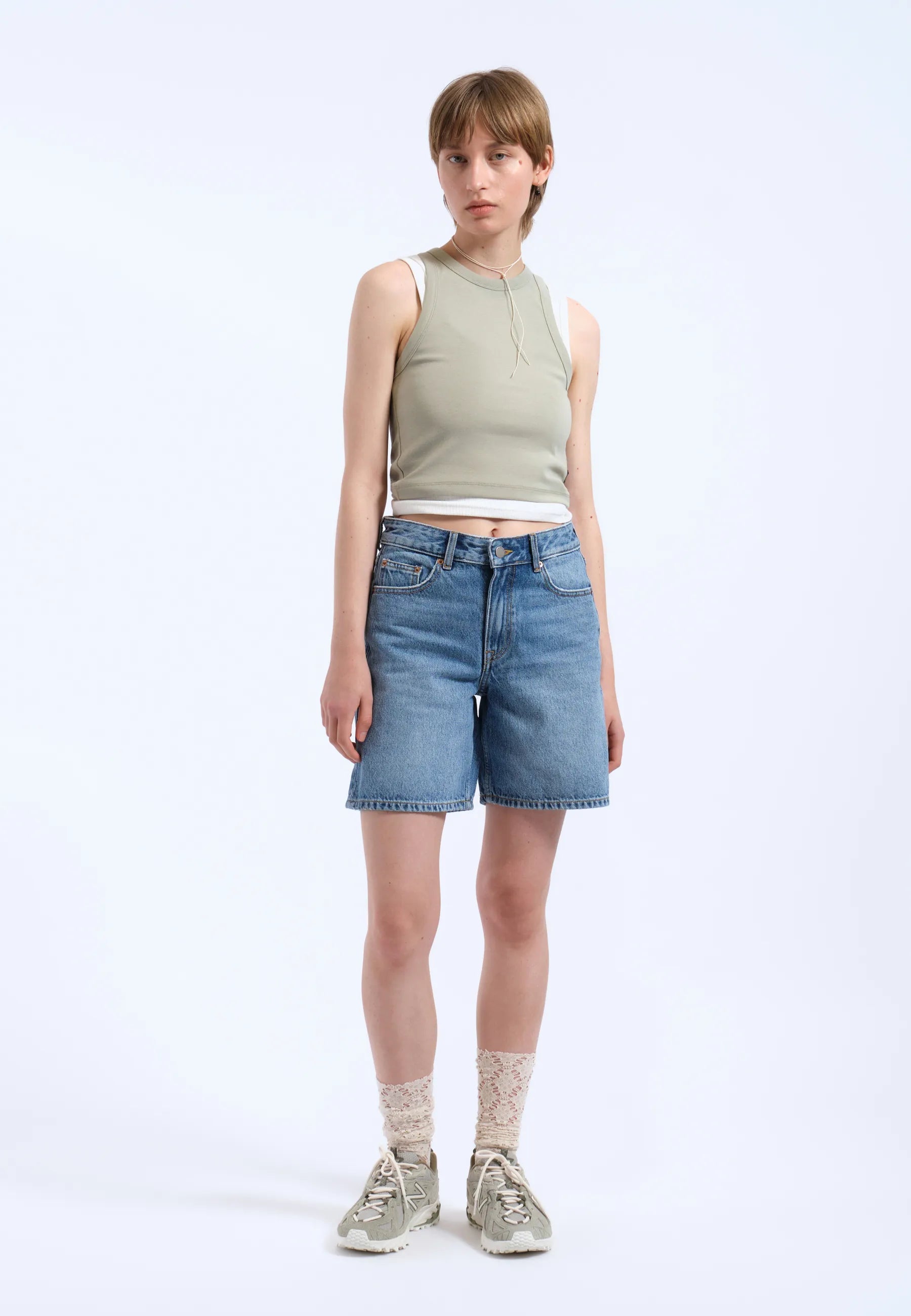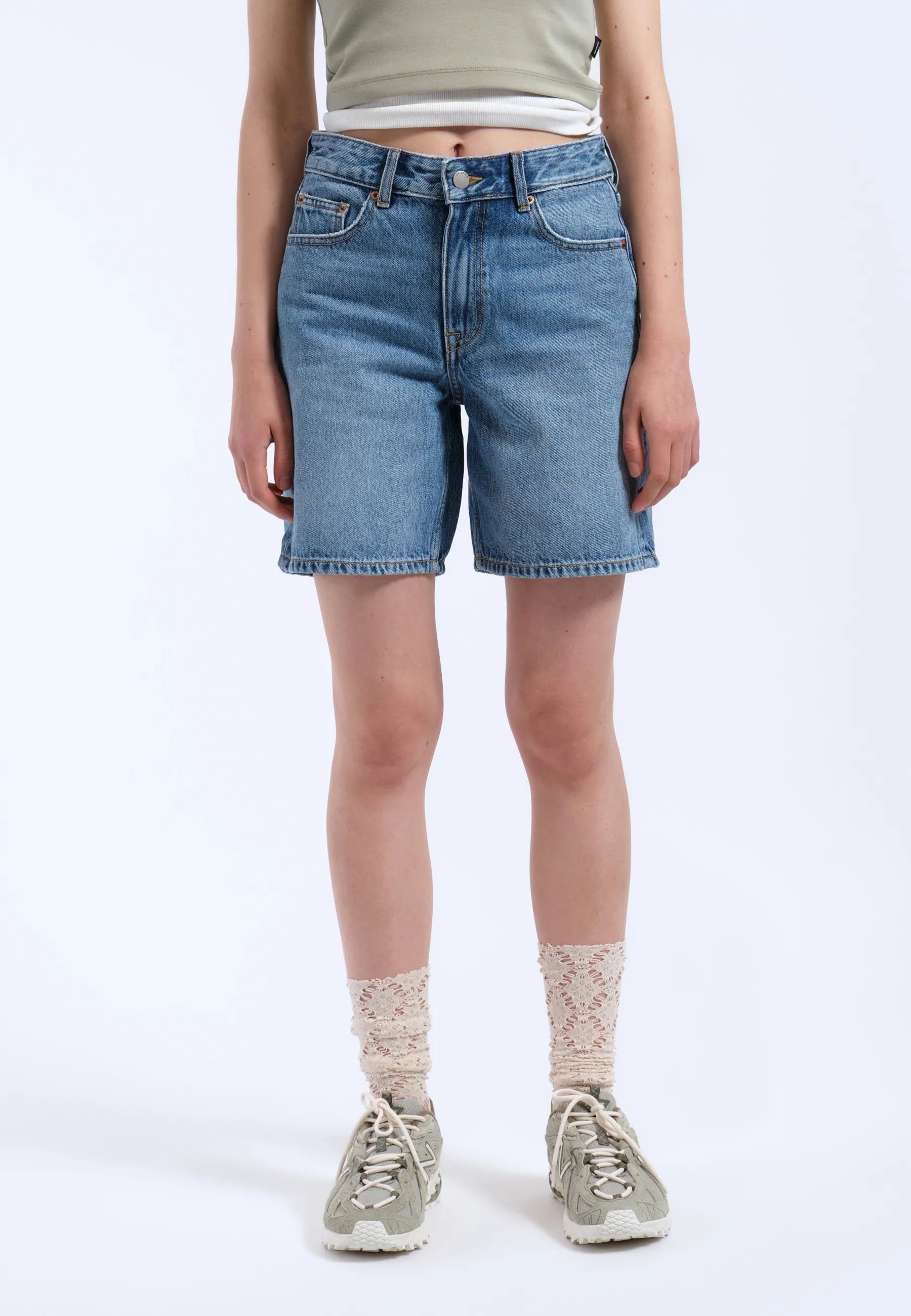 Ce short est confectionné en denim extensible confortable, composé à 99 % de coton et à 1 % d'élasthanne. Ce tissu offre une souplesse modérée, offrant une coupe confortable qui accompagne vos mouvements tout en conservant la structure et le toucher d'un denim classique et rigide.
