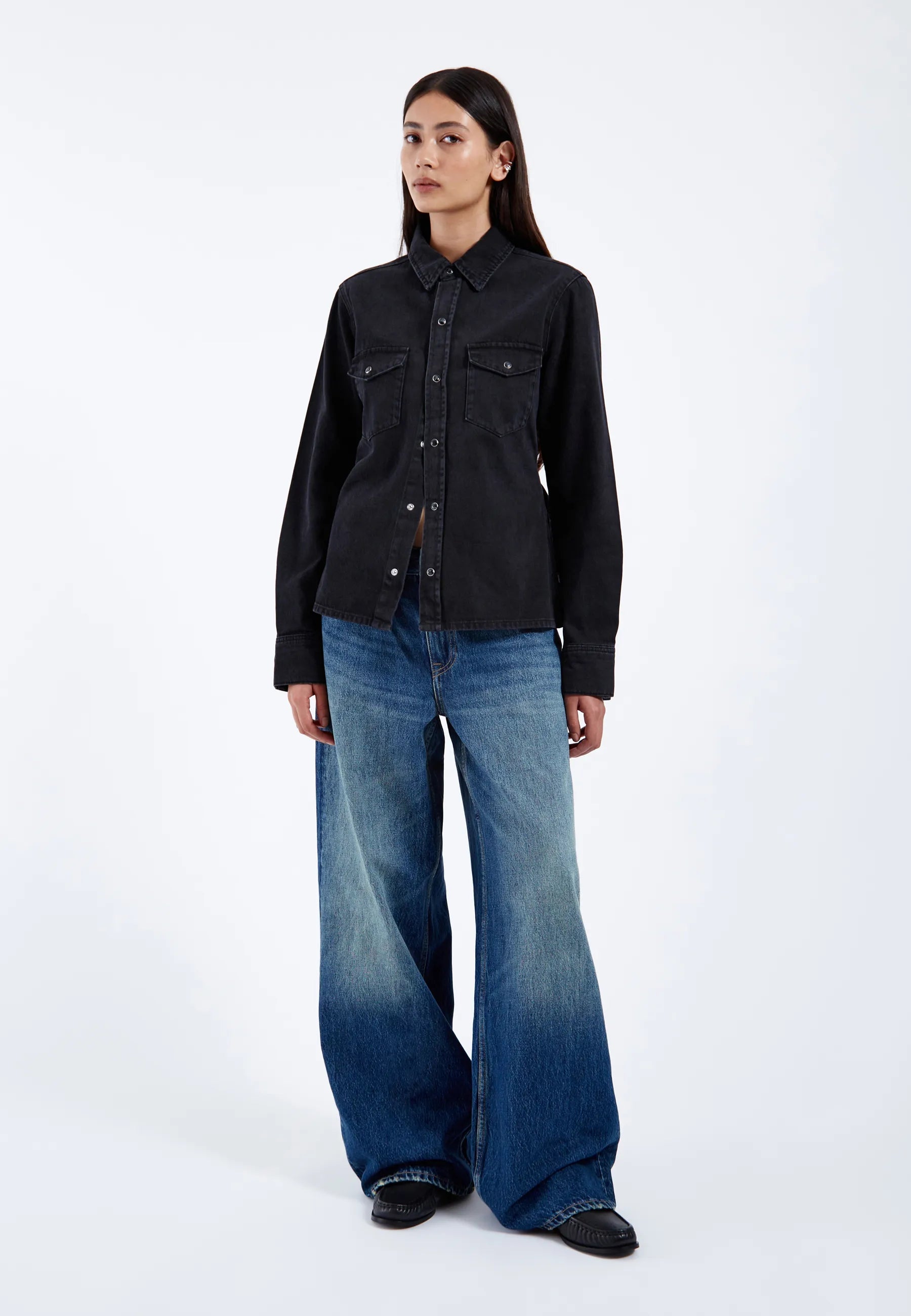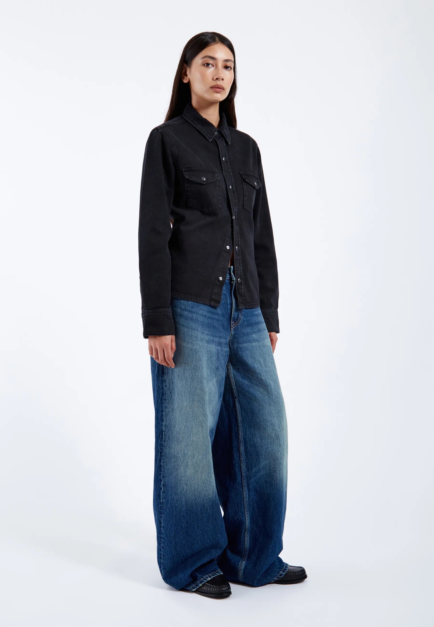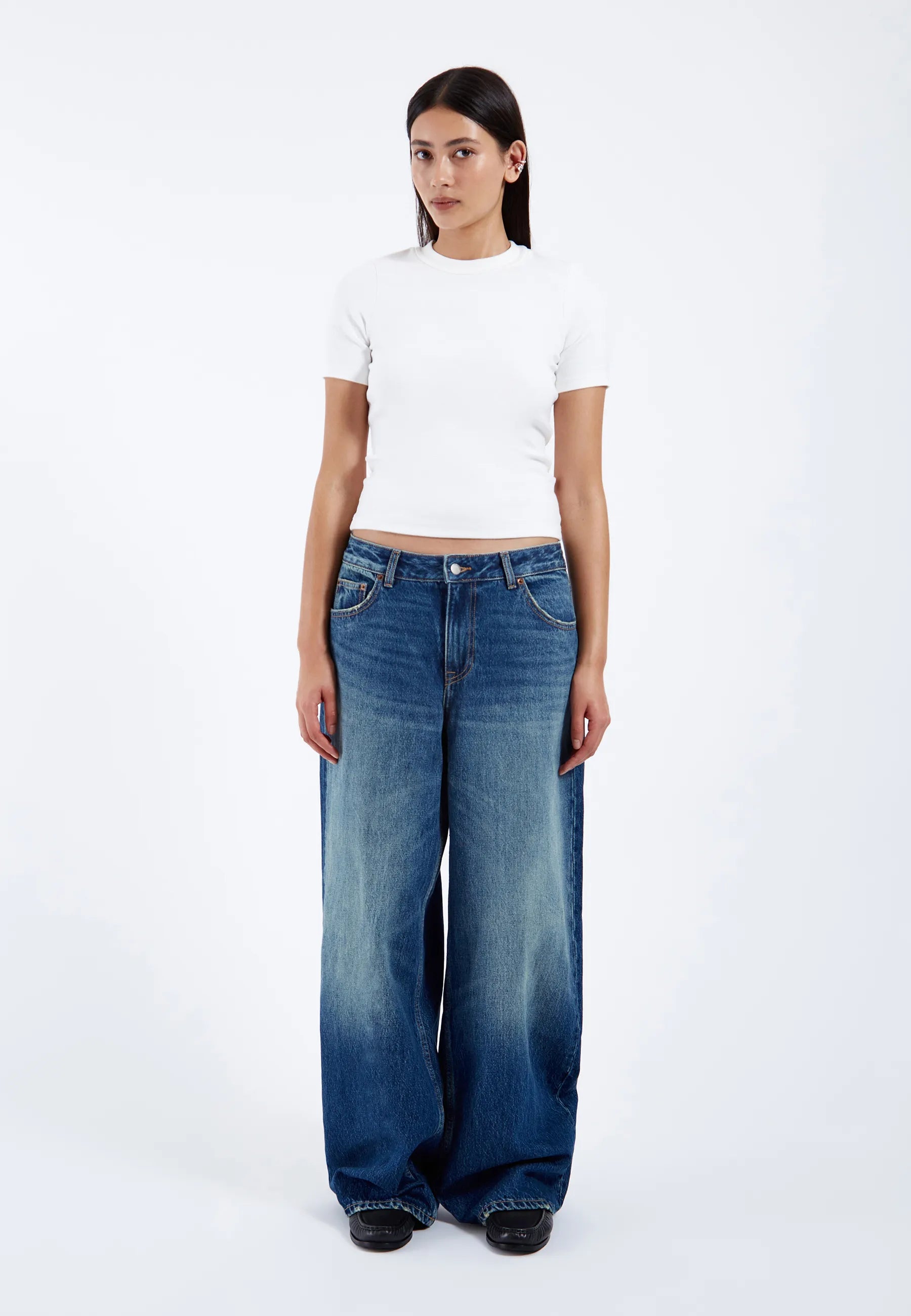 Wide straight leg with slightly dropped crotch