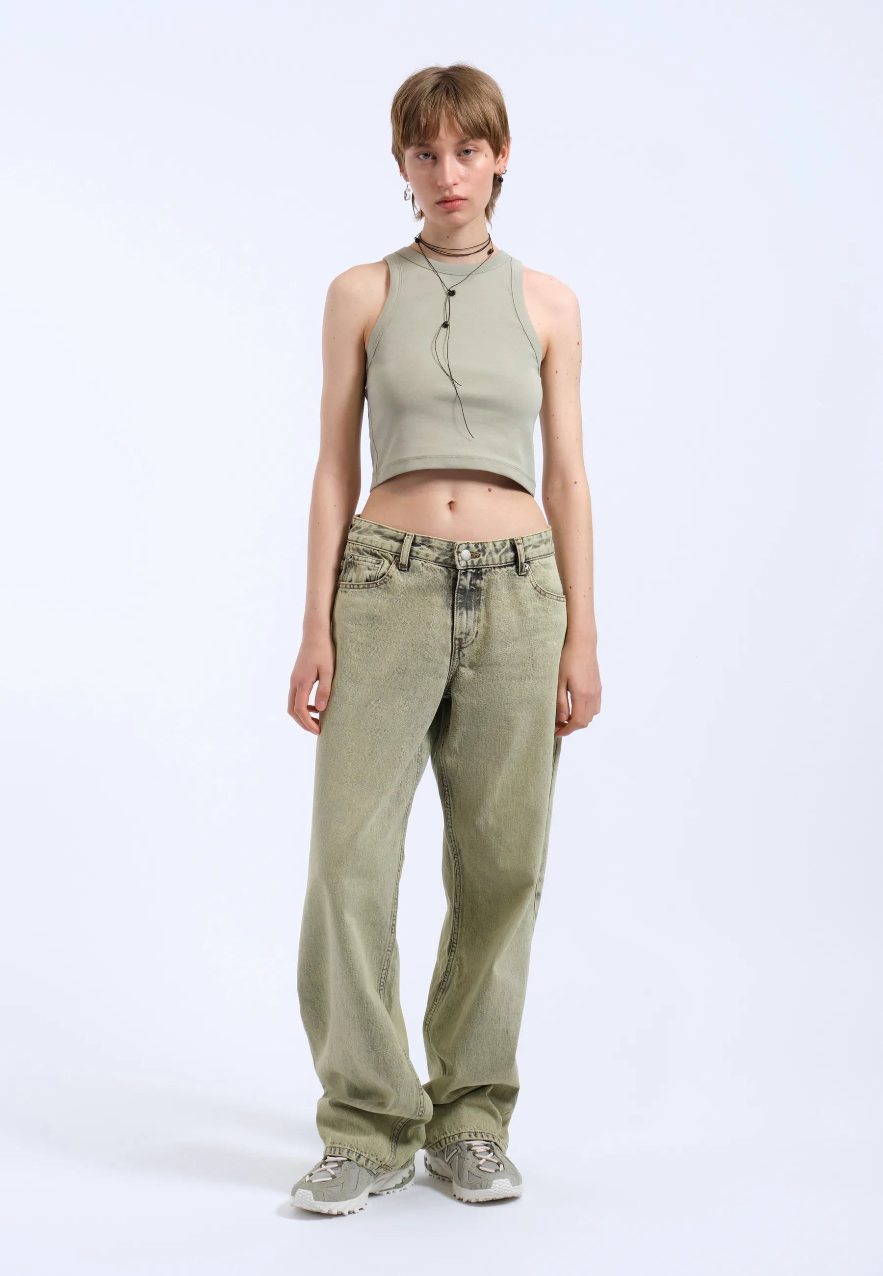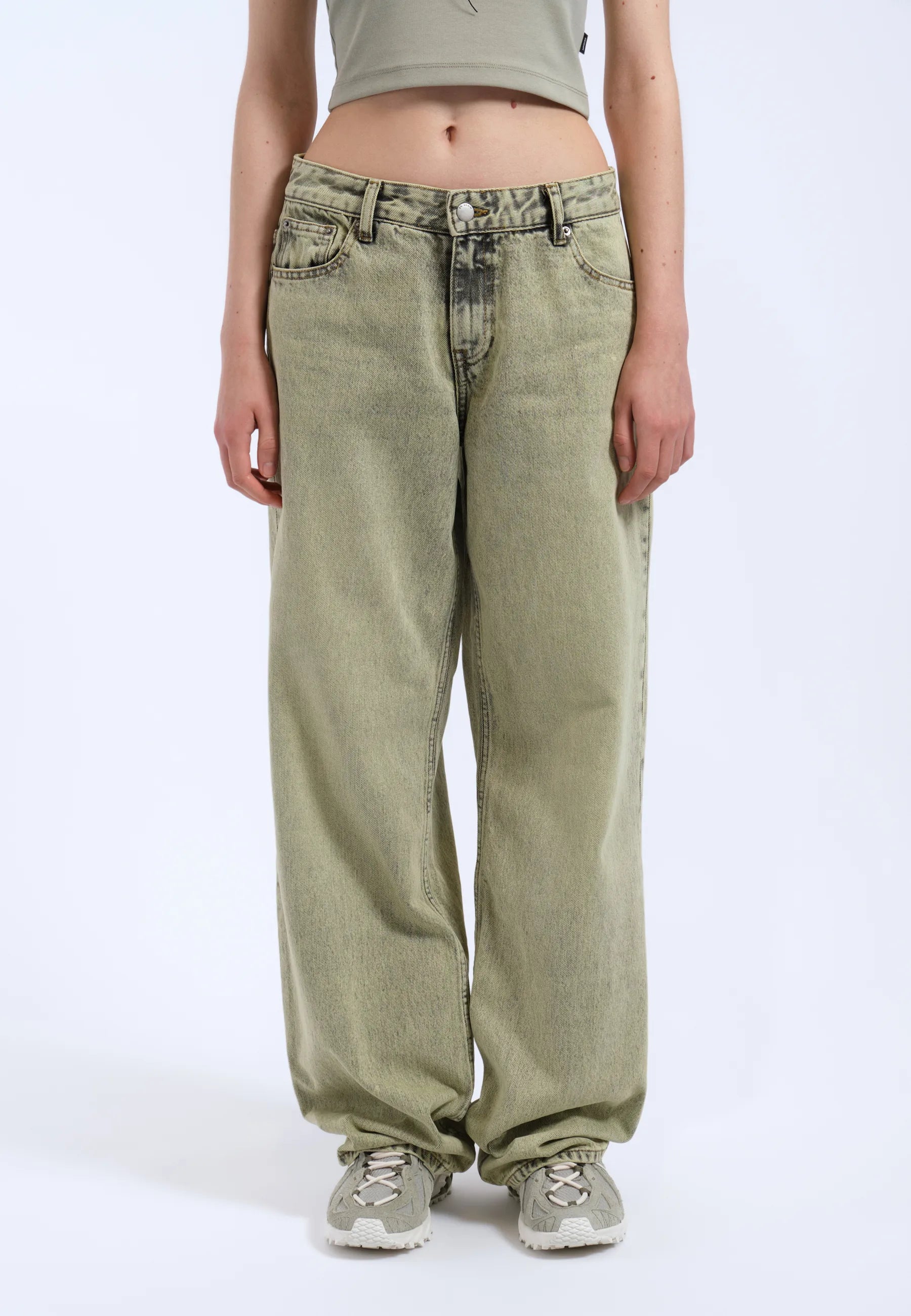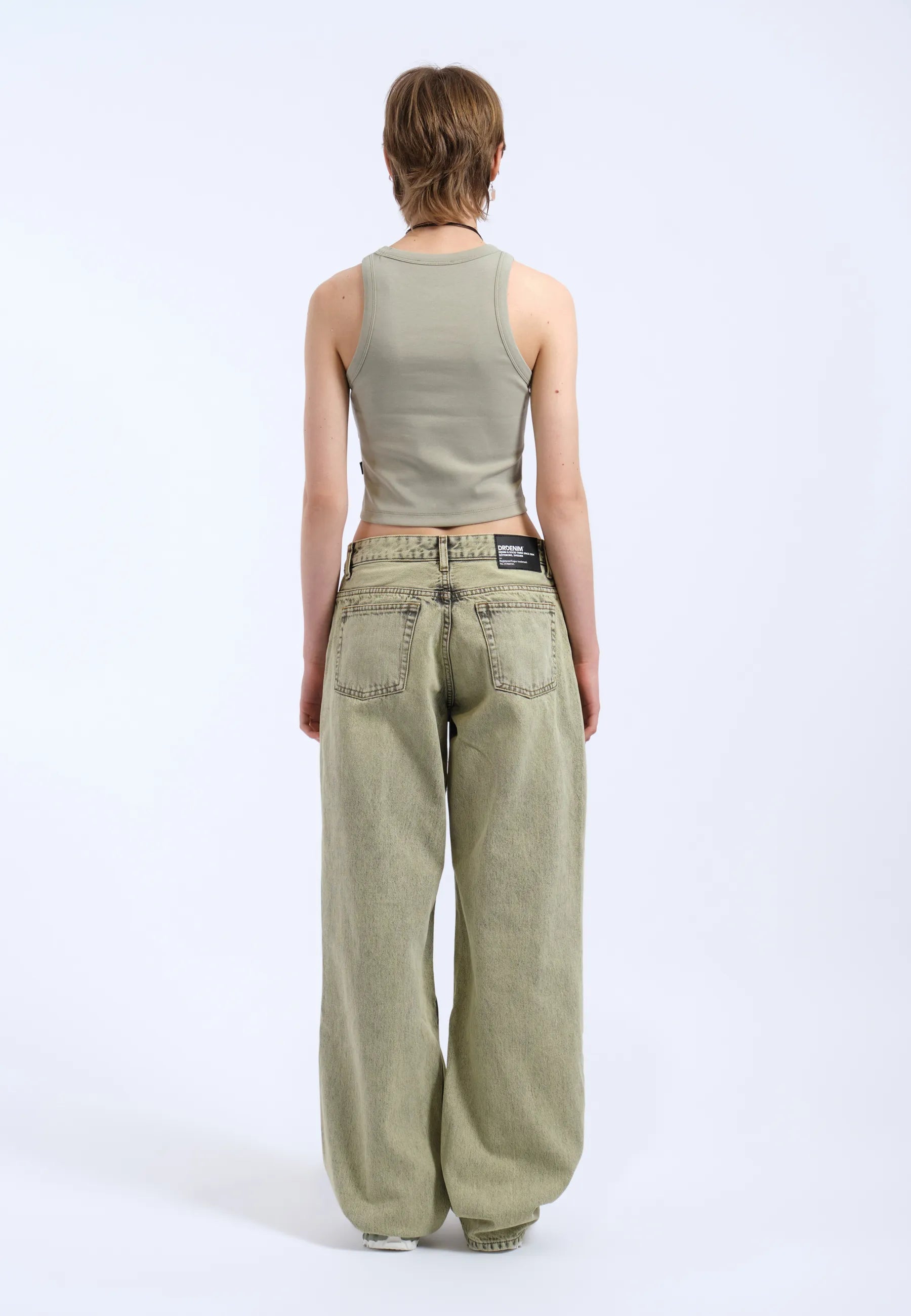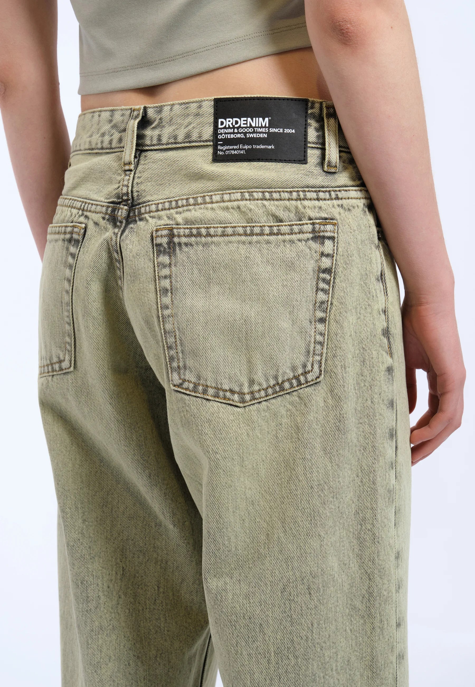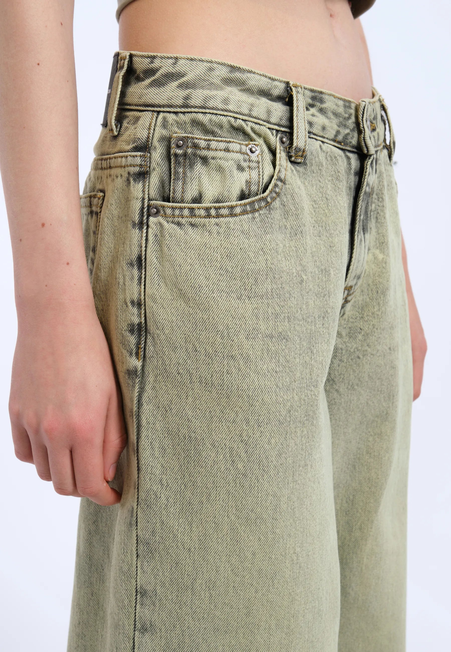 Jambe large et droite, légèrement cintrée à l'ourlet