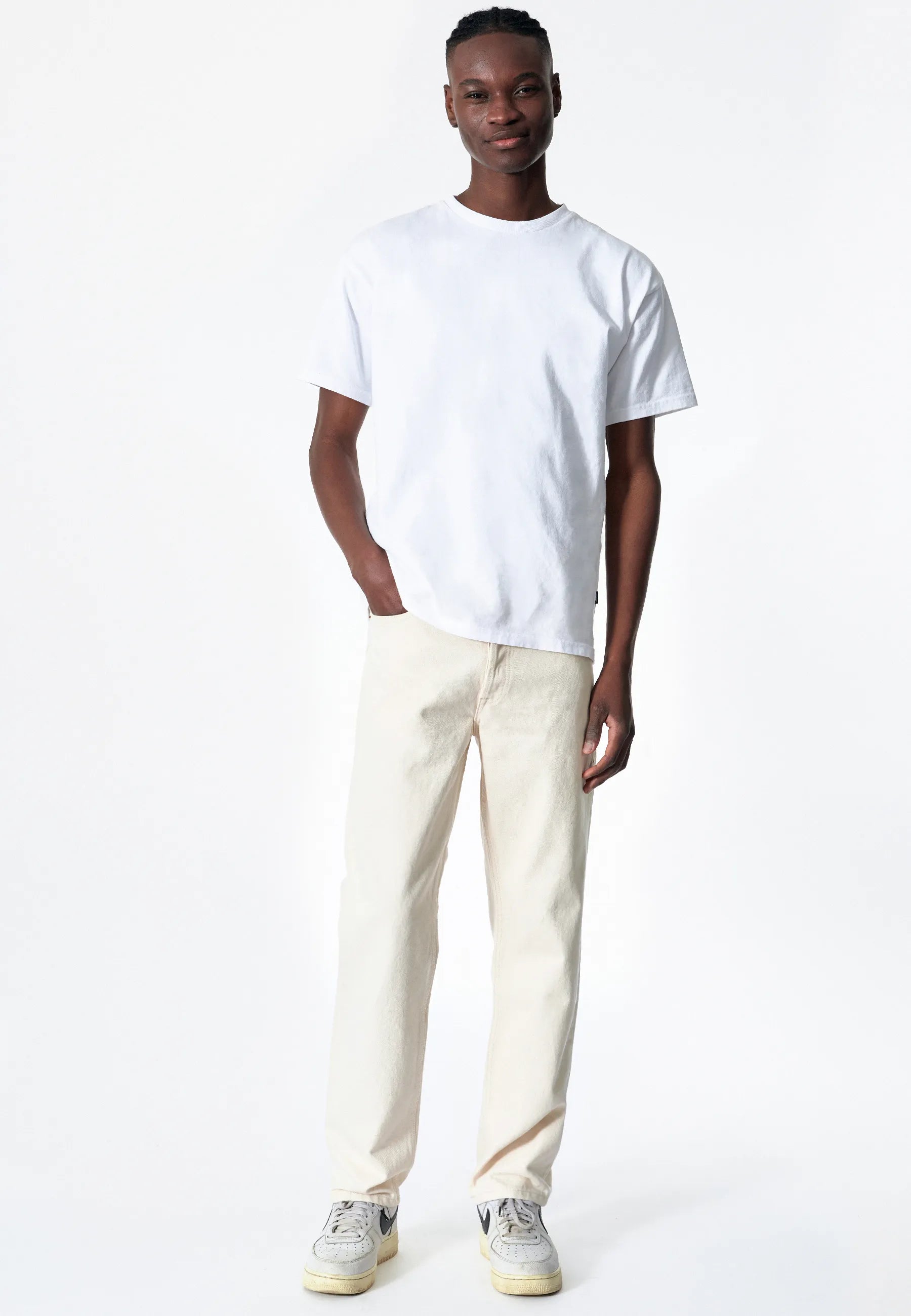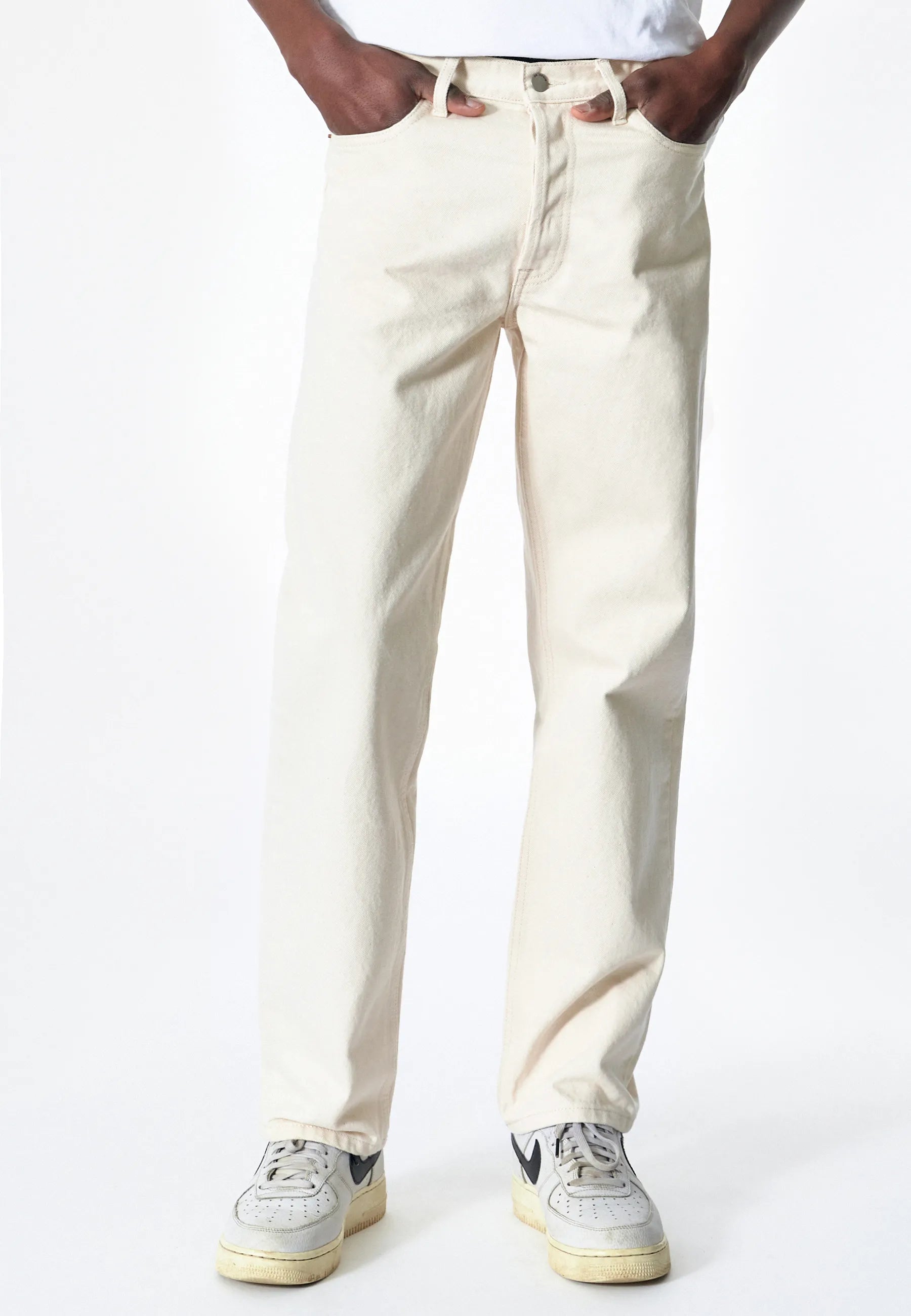 Regular fit jeans med en anti-fit skärning, normal midja och raka ben. Klassisk design med 5 fickor och knappgylf. Dessa jeans är tillverkade av ett styvt, icke-stretchigt denimtyg.
