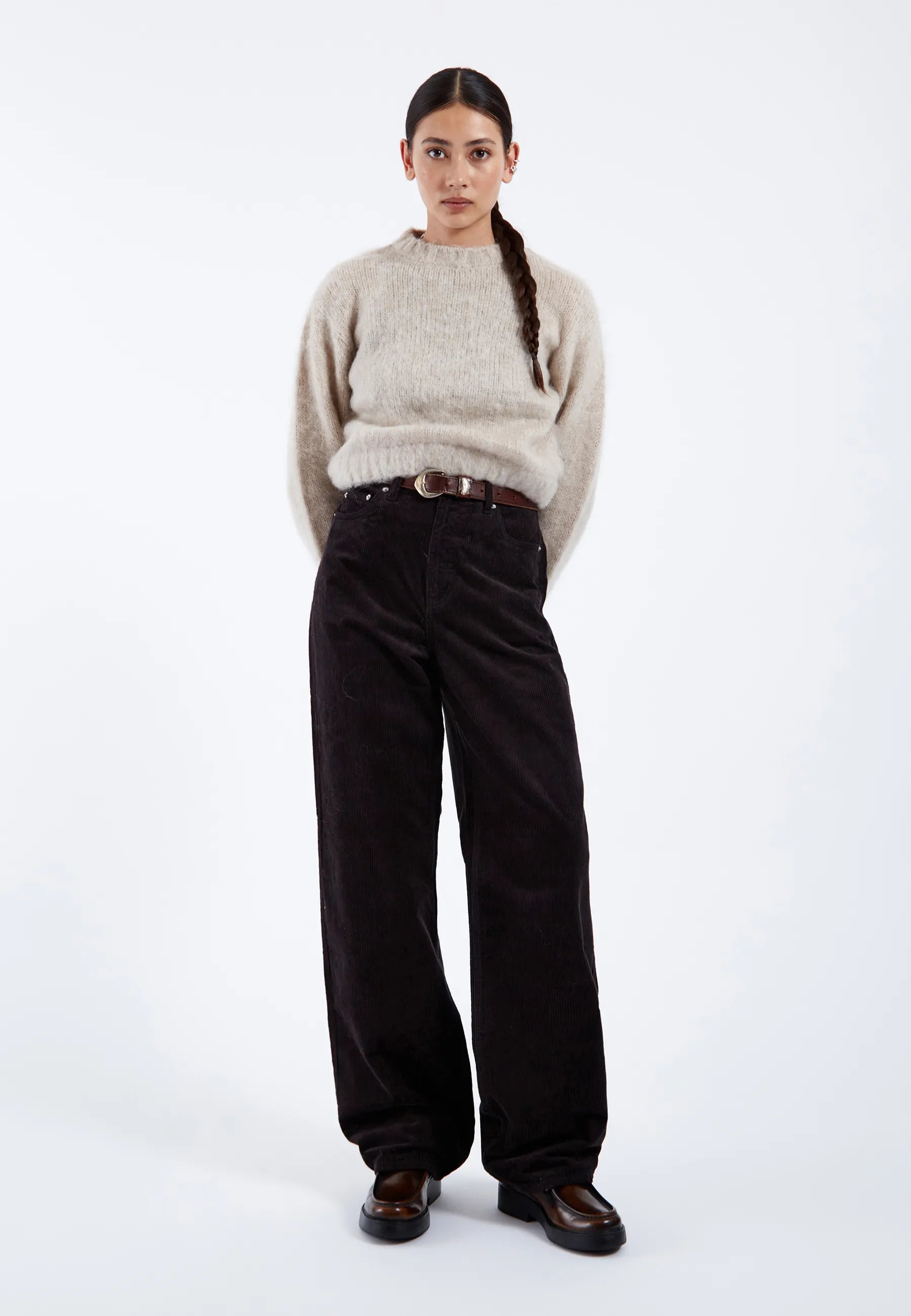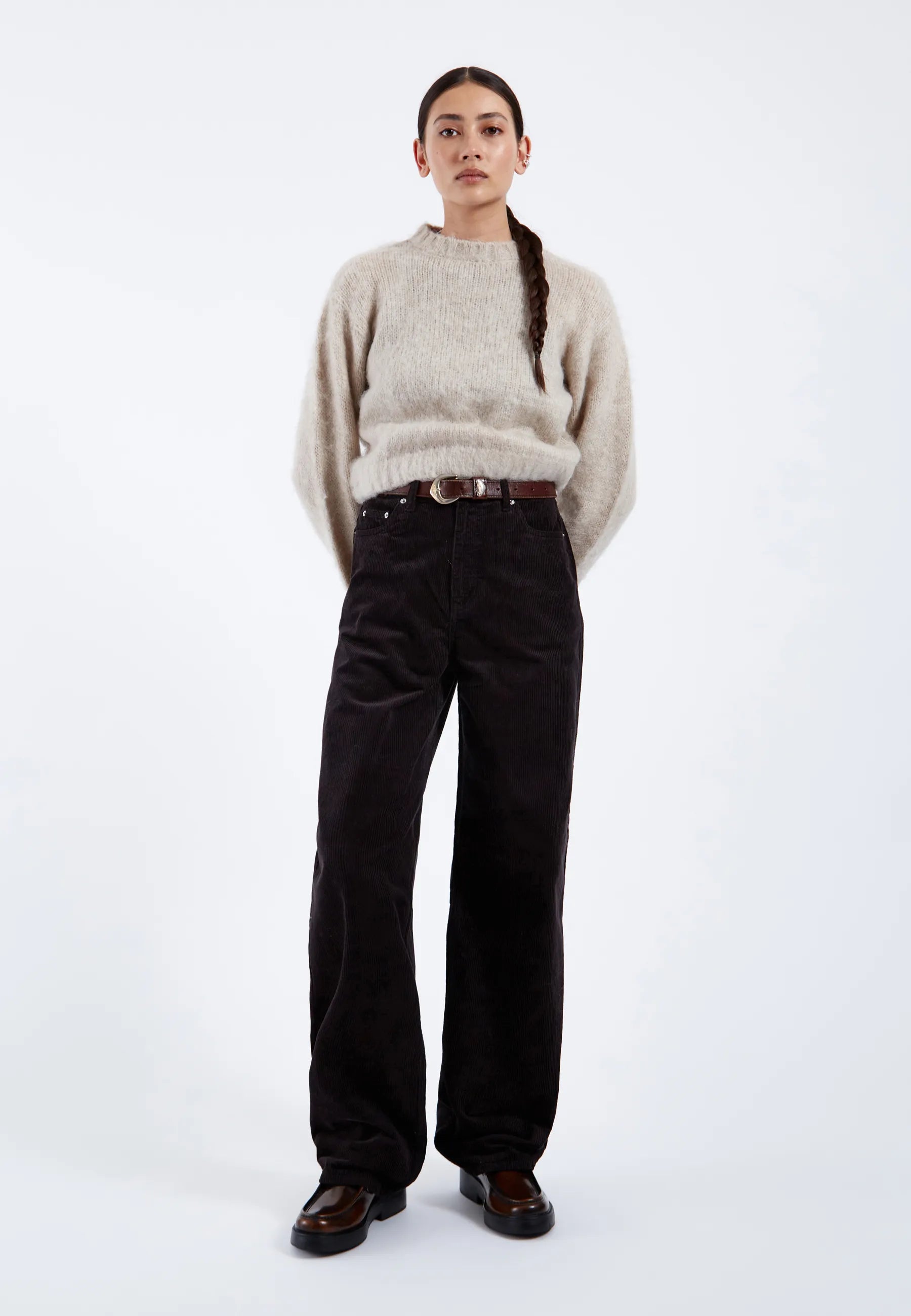 Wide straight leg, slightly nipped in at hem