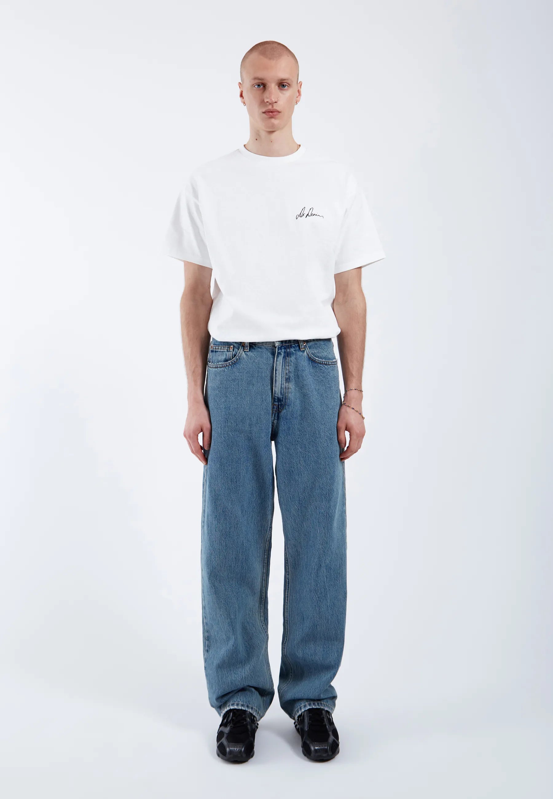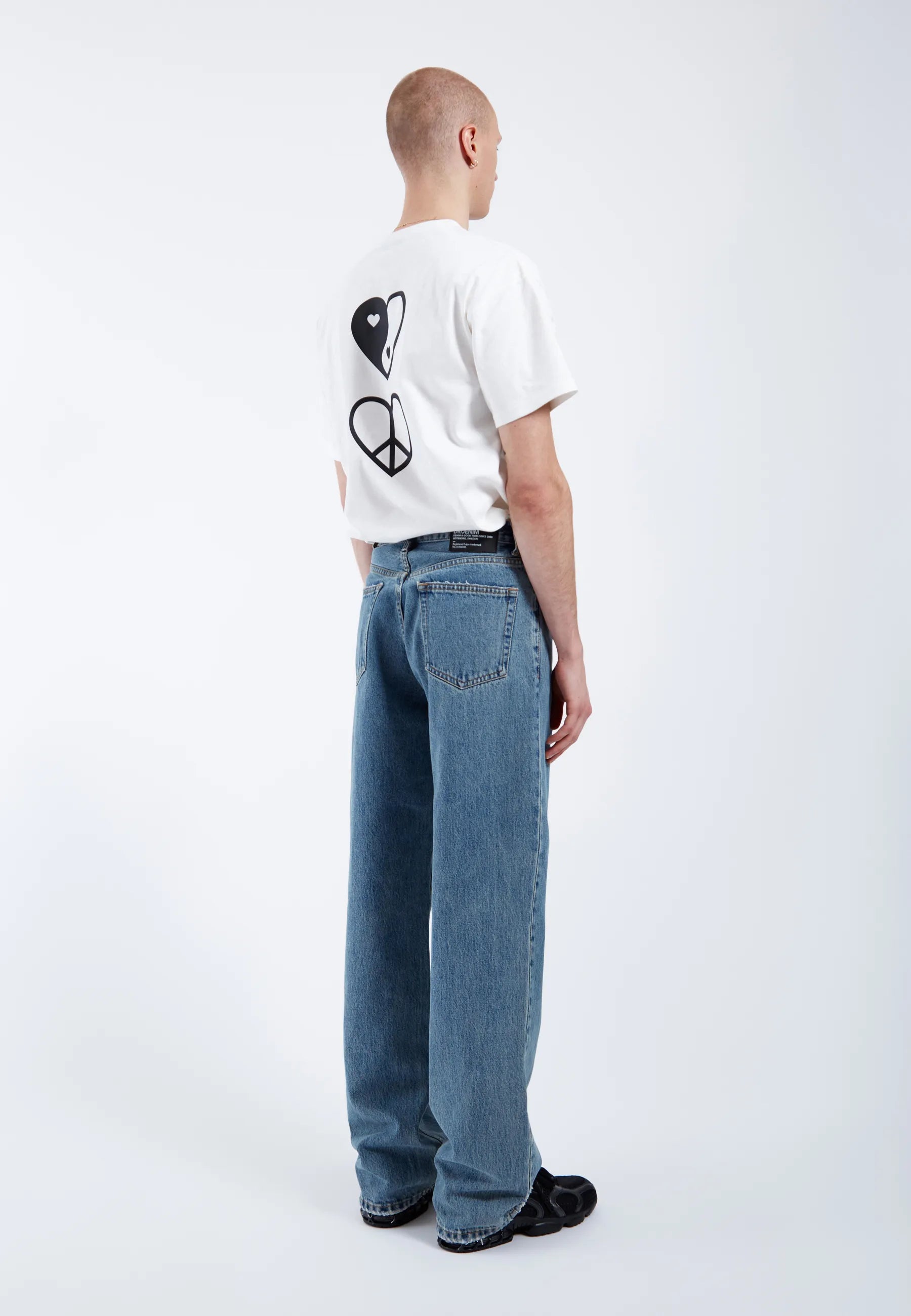 Relaxed fit jeans med normal midja och vida, raka ben. Klassisk 5-ficksdesign med dragkedja. Dessa jeans är tillverkade av ett styvt, icke-stretchigt denimtyg.